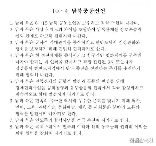 노무현 정부 때는 2007년 10·4남북공동선언<★>을 해.