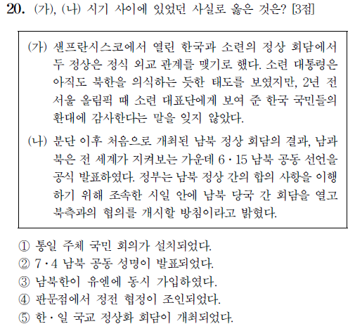 3번 : 유엔 동시 가입은 노태우 정부 91년. 정답!